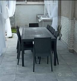 Set coordinato tavolo e 10 sedie senza braccioli in polipropilene, colore Antracite, linea rattan.