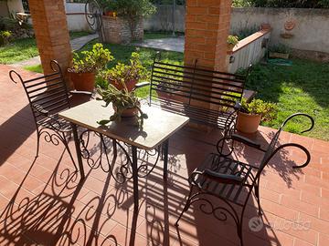 Tavolo e sedie realizzate da artista artigiano del ferro battuto. Pezzo unico !!!! Dimensioni Tavolo : 100x60x68 cm