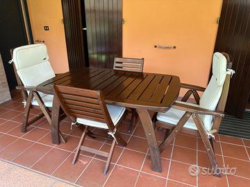 Tavolo da giardino in legno 140x 100 cm, con allunga da 60 - cm 200 cm lunghezza totale. 6 sedie. No poltrona, ne ho solo una Vendo 600€