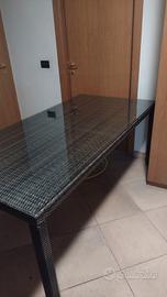 vendo tavolo in rattan verde scuro da giardino, con 6 sedie due delle quali con braccioli, acquistato in un garden, alta qualità. piano del tavolo rivestito con lastra di cristallo. misure 180x90 cm Solo ritiro a mano