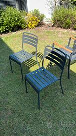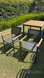 Vendo anche separatamente: - Tavolo da pranzo per 4 persone 89x89 cm in alluminio con piano in eucalipto marrone (utilizzato 3 anni e leggermente scolorito); tot. 70 euro - 2 sedie da giardino in alluminio con seduta in textilene grigio; tot. 70 euro - 2 sedie da giardino in acciaio antracite; tot. 50 euro
