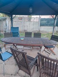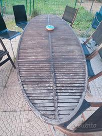 vendo set da giardino tavolo e quattro sedie in legno da sistemare e trattare come da foto a 80 euro