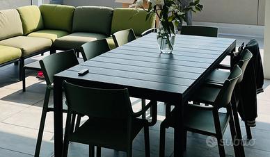 Vendo tavolo da giardino outdoor marca Nardi. La composizione comprende: •n. 6 sedie modello Trill Armchair •tavolo modello Rio allungabile da 210 a 280 cm In omaggio 8 cuscini sedie