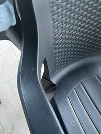 Vendo set composto da 2 tavoli quadri in plastica misura 78cm di lato e 6 sedie in plastica ( + 2 sedie non presenti in foto)