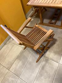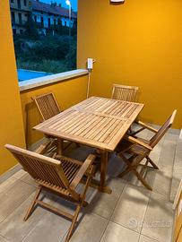 tavolo e 4 sedie molto robusto da esterno in legno massello..misura 150x90