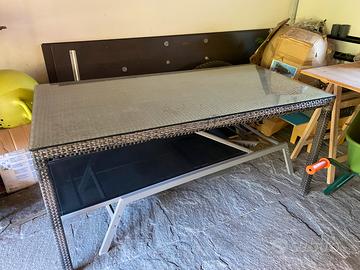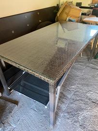 Tavolo con cristallo piu4 sedie abbinate in rattan marca Emu