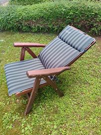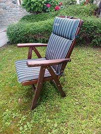 Tavolo in legno massiccio da esterno, completo di seggiole/poltrone pieghevoli e reclinabili, con cuscini benetton, supercomode, super robusto