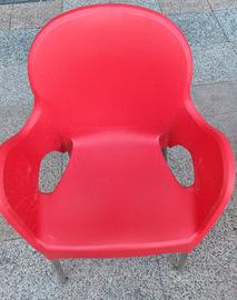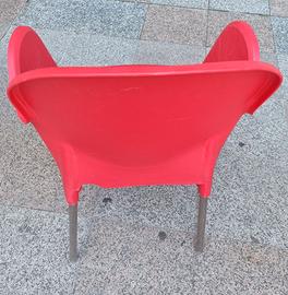 KIT TAVOLO e n. 4 Sedie (poltrone) impilabili moderne per casa, cucina, soggiorno, ufficio, sala d'attesa, sala conferenze, bar, ristorante, pub, pizzeria, gelateria, pasticceria, negozio, albergo, in colore rosso, fatturabili. Le sedie sono ergonomiche ed impilabili con braccioli, sedile e schienale in polipropilene. Gambe in alluminio anodizzato 25 mm. Per uso interno/esterno.