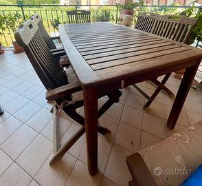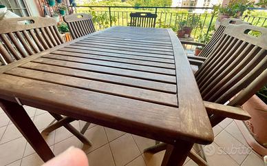 Vendo tavolo in legno serie Amalfi, misure Lunghezza 150cm Larghezza 90 cm Altezza 75 cm. 6 sedie ripiegabili in legno con braccioli sedie Amalfi. Condizioni buone. No spedizione.
