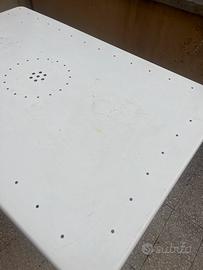 Tavolo marca Emu, modello Pigalle, bianco, 120 cm per 76 pieghevole, segni di usura sul piano visibili dalle fotografie.