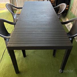 Tavolo allungabile in plastica da esterno (misura da chiuso 150x90 cm, da aperto 220x90 cm) con 5 sedie; colore antracite.