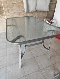 Tavolo con base in vetro e ferro battuto +6 sedie sempre in ferro battuto