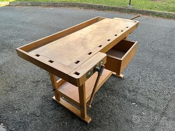 Vendo per inutilizzo bellissimo tavolo usato pochissimo come si vede in foto in robusto faggio dotato di due morse un lungo portaoggetti e di un ampio cassetto