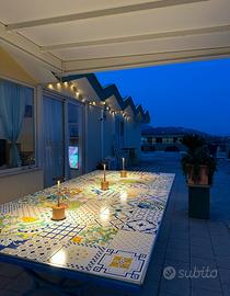 Tavolo artigianale realizzato a mano in ferro battuto (pieno) con base di ceramiche di vietri dipinte a mano. Misura 1,20 m x 2,50 m Perfetto senza alcun difetto Imballato e ritirabole a piano terra in Formia