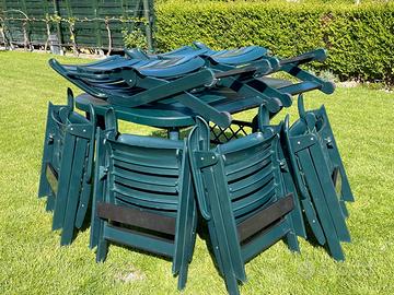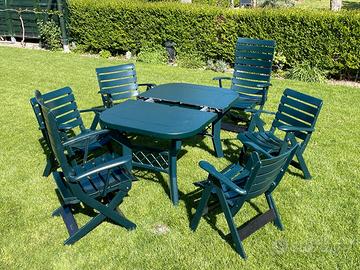 Quattro poltrone Rovergarden modello Lesa in resina pieghevoli complete di cuscini con schienale