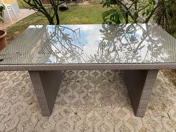 Tavolo da giardino in rattan grigio con piano in vetro Misure 160 * 90 altezza 77