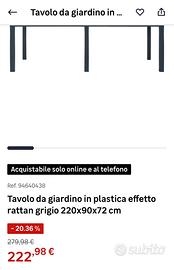 Tavolo rattan grigio scuro, in perfetto stato, presente solo un po di scolorrimento dal sole ma risolvibile con rinnova plastica. Ritiro a Mappano