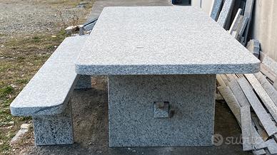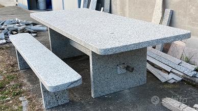Tavolo grosso in pietra con 2 panche