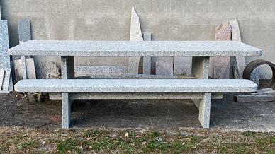 Tavolo grosso in pietra (serizzo) con 2 panche spessore 6 cm misure cm 283x108. Prezzo euro 1650.