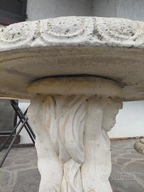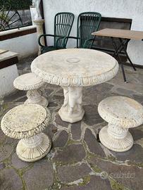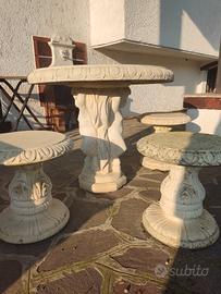 tavolo in cemento con 4 sgabelli. diametro 88 cm, altezza 78cm. no spedizione. presenta una crepa longitudinale che però non pregiudica la stabilità. da vedere senza problemi