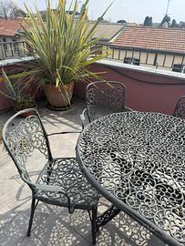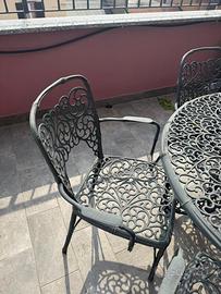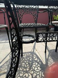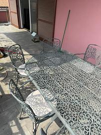 Vendo tavolo in ferro battuto massiccio lavorato con 6 sedie sempre in ferro battuto. Dimensioni 240x120 cm