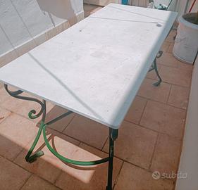 Vendo bellissimo tavolo in stile liberty in ferro battuto color verde e piano in marmo bianco ( 150cm larghezza x 75 cm profondità x 80 cm altezza da terra).