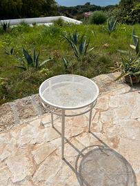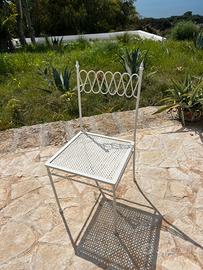 tavolo in ferro da esterno e giardino anni 50 recentemente sistemato e ridipinto con 6 sedie originali e 2 tavolini (1 tondo e 1 rettangolare). Misure: tavolo 70X120X70 cm tavolino tondo diam. 45X60 cm altezza e tavolino rettangolare 45X70X56 cm
