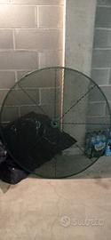 tavolo da giardino in ferro colore verde scuro con buco centrale per ombrellone, diametro di 1,20mt, essendo venuta via la vernice con gli agenti atmosferici, ci sono dei piccoli segni.