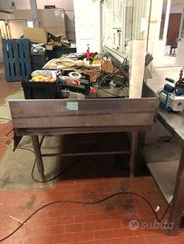 Vendo tavolo interamente costruito in acciaio INOX con sponde su cardini. Misure 400x100 h 85 h con sponde chiuse 105 cm. Dispongo di altri tavoli. Possibilità di trasporto, montaggio e modifiche su misura.