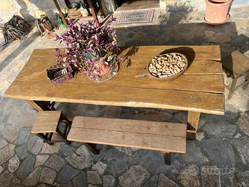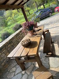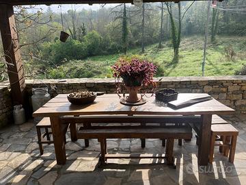 Bellissimo tavolo di legno fatto a mano con due panche e tre sgabelli, misure 230x82x72 Ottime condizioni. Ritiro zona monte morello