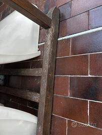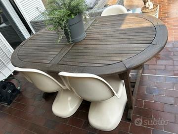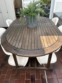 Tavolo in legno da esterno misue 180x 110 con prolunghe per allungarlo circa 240. Presenta foro per ombrellone . Il tavolo e sempre ststo protetto ma va sistemato . Presenta alcuni difetti come in foto. Ritiro e smontaggio a carico dell acquirente .