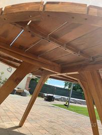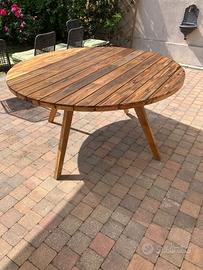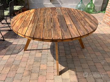 Vendo tavolo da giardino in legno massello, dalla forma rotonda, con diametro di 150 cm e altezza di 78 cm. Ideale per arredare con gusto il tuo giardino, terrazzo o veranda.