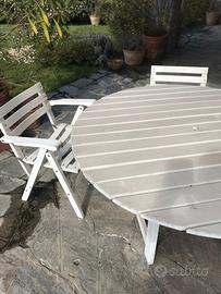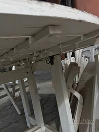Vendo tavolo da giardino in legno diametro 140cm 6 sedie anni '70 della Ellisse Italy. Sia il tavolo che le sedie sono ripiegabili. Tutte le strutture e le doghe sono avvitate con viti in acciaio inox. In buone condizioni con la normale usura del tempo.