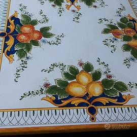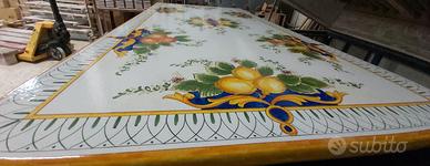 Tavolo: Piano in pietra lavica maiolicata, misura 200x100 cm.