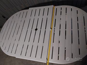 vendo per passaggio ad altro modello, tavolo in resina con prolunga estensibile di 45 cm. Dimensioni chiuso 115x90, allungato 160x90 completo di 4 sedie regolabili. acquistato presso giardinia non è in plastica ma resina, mantiene il colore bianco anche al sole dopo anni. Prezzo trattabile.