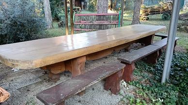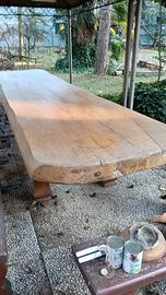 Enorme tavolo in rovere con panche come in foto misure in cm 480 x 100 spessore 11 Ritiro a carico dell'acquirente