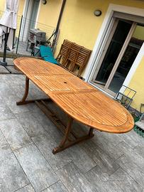 Come da descrizione, vendo tavolo in teack, estensione massima 240, chiuso 180 larghezza 110. Comprensivo di sei sedie abbinate dello stesso materiale. Non spedisco, consegna a mano