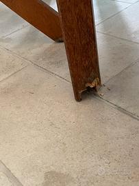 Tavolo in legno tek, 90x90 h 75 , 4 sedie 56x 43, da sistemare una gamba tavolo