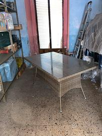 Tavolo 150x100 in vinini plastificato con vetro temperato per giardino terrazzo