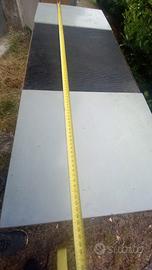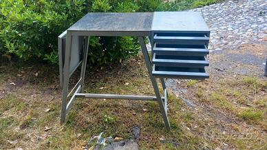 Banco da lavoro in metallo. Piano centrale con tappetino rigato antiscivolo, 4 cassetti metallici a destra, ala sinistra ribaltabile salvaspazio. MISURE: prof. 40 cm x largh. 104 cm con ala aperta (70 cm chiusa) x H 75 cm. Piano lavoro 40x40 cm. Solo per ritiro su appuntamento. Prezzo trattabile.