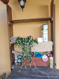 tavolo lavoro esterno rustico con 2 piani superiori e sotto il piano del tavolo un altro piano