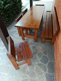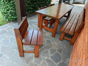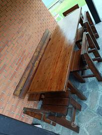 Vendo tavolo legno per giardino cm. 240 x 75, panca cm. 240 e n. 6 sedie.