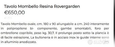 N. 1 tavolo Monbello Rovergarden allungabile da 180 a 240 cm in ottime condizioni.