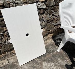 Tavolo da esterno ovale , smontabile, lunghezza cm 145 , larghezza cm 90, munito di prolunga cm 52x 90. Lunghezza massima con prolunga cm 197, con 6 sedie . Ben conservato