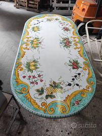 Eleva il design del tuo spazio esterno o interno con l'eleganza senza tempo di un tavolo ovale in vera pietra lavica maiolicata. Un pezzo d'arredo indistruttibile, pensato per chi cerca la massima qualità artigianale.