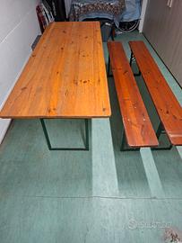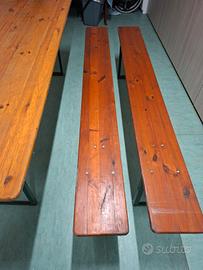 tavolo e due panche il legno pieghevoli. dimensioni tavolo cm 220 x 80 panchine cm 220 x 25