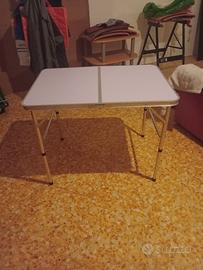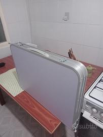 vendo con dispiacere tavolo in allumino nuovo ( con almeno tre mesi di vita e pagato poco piu' di 40€) per pic nic e campeggio richiudibile e trasportabile a forma di valigia con manico in plastica. misure da chiuso( quindi a forma di valigia): 60x 6x45 cm misure da aperto : 60x6x90 cm preferisco ritiro in loco cmq