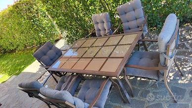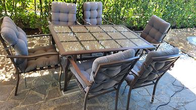 Tavolo in ferro da giardino completo di 6 sedie con cuscini usato in discrete condizioni