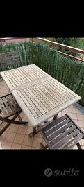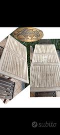 Vendo Tavolo in legno di Balau, legno tropicale pregiato, noto per la sua durezza e naturale resistenza alle intemperie. Per spazi esterni grazie alla sua resistenza naturale agli agenti atmosferici è prodotto da Alexia Balau Collection. Al momento ha necessità di una mano di flatting. Nelle foto di può ammirare aperto e chiuso. Ha la sede al centro per l'ombrellone. email: rigadavi21@gmail.com No corrieri. €.150,00