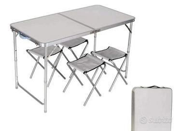 Vendo tavolo pic nic 120×70 regolabile in tre diverse altezze compresi 4 sgabelli usato pochissimo in casa, gli sgabelli mai usati, pari al nuovo. Trattabile